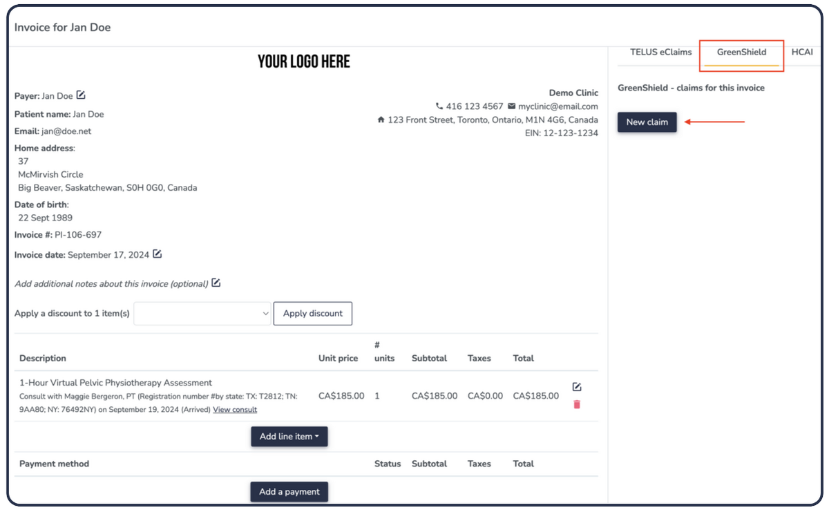 Just like our longstanding integration with TELUS eClaims, and our recent integration with Health Claims for Auto Insurance (HCAI) for MVAs, our newest integration with Greenshield and providerConnect™ seamlessly integrates with our Practice Management billing features